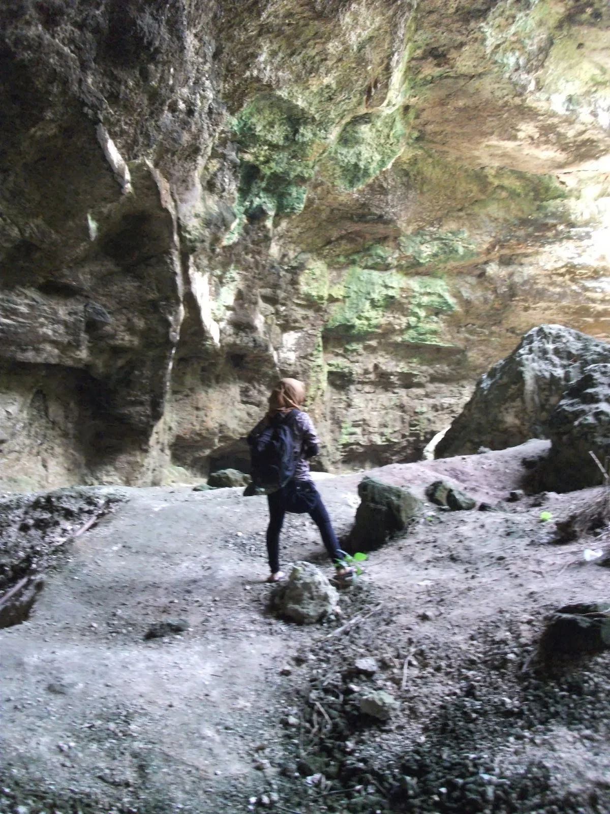 Goa Lebar ini terletak di dataran tinggi, jadi untuk sampai di sini, harus melewati perkampungan sempit dengan jalan menanjak.