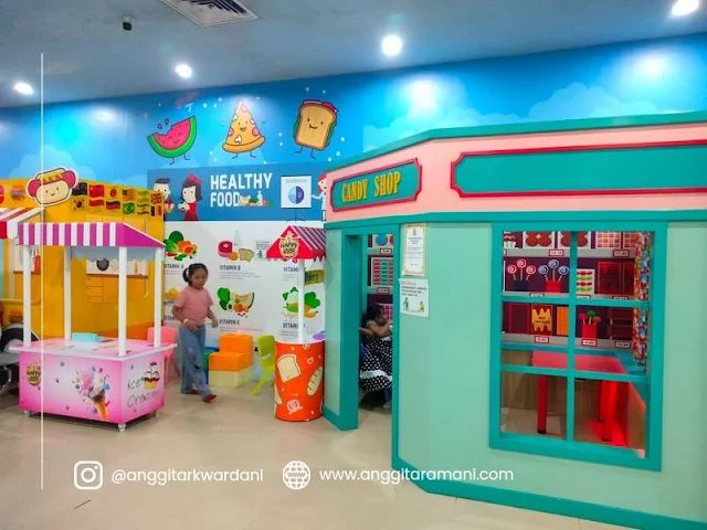 Selain bermain sepuasnya, di sini anak juga bisa belajar berbagai profesi dan role play jadi penjual makanan atau minuman. Pasti bakal jadi pelajaran menarik untuk anak.